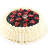 Fahlmans tårtklassiker, fylld med hasselnötskräm, chokladpenslad nötmaräng och en vacker spiral av chokladrulltårta som gör tårtan randig när den skärs upp. Toppad med ett kakaopudrat marsipanlock med Fahlmans sigill och rostade hasselnötter kring kanten.