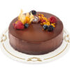 En vacker tårta med lager av mandelbiskvibotten, chokladpenslad maräng och sockerkaka. Dessa varvas med tjockt vispad kolagrädde och toppas med hyvlad vit choklad, ett snövitt lager florsocker och slutligen en handgjord marsipanros.